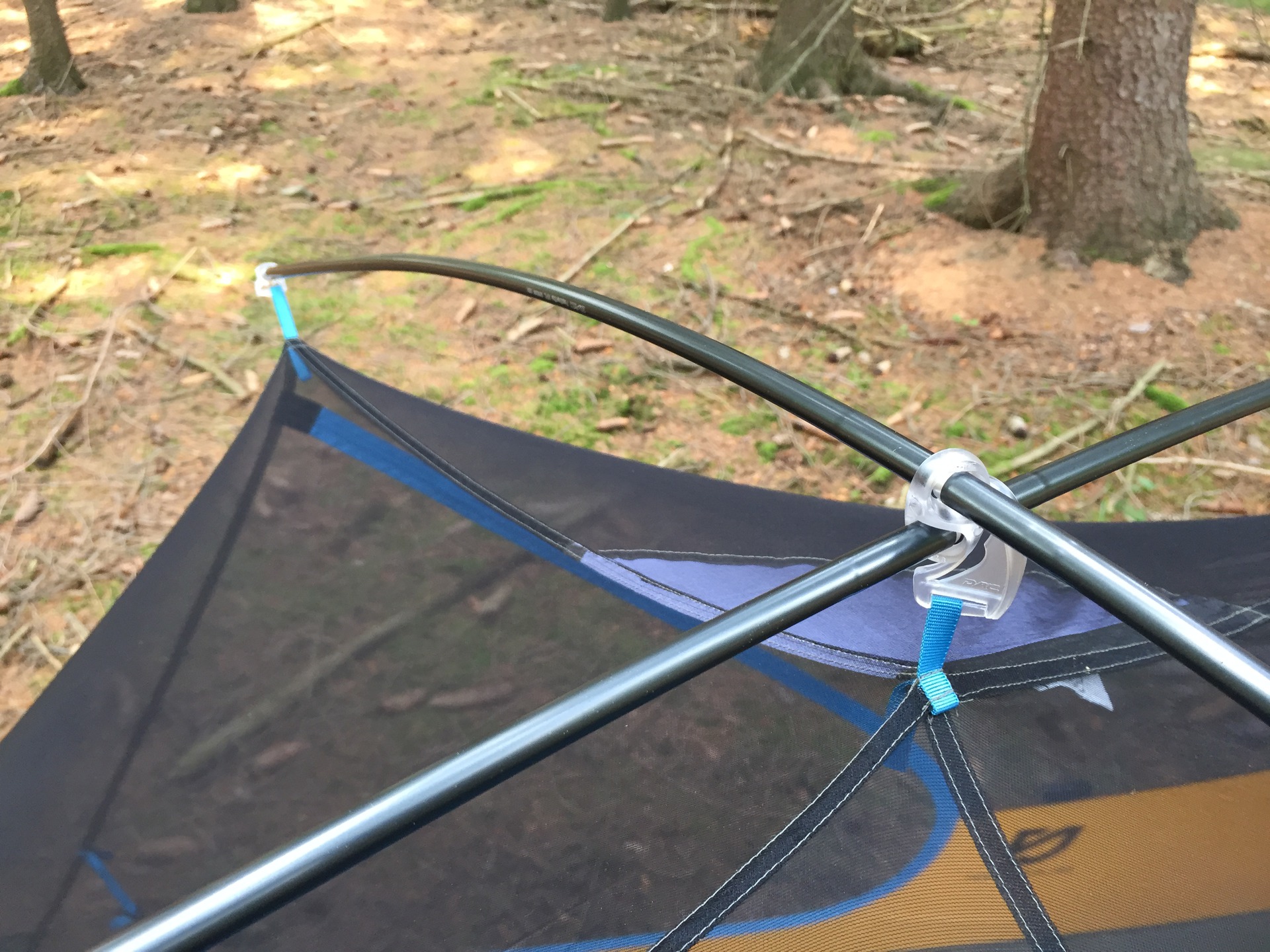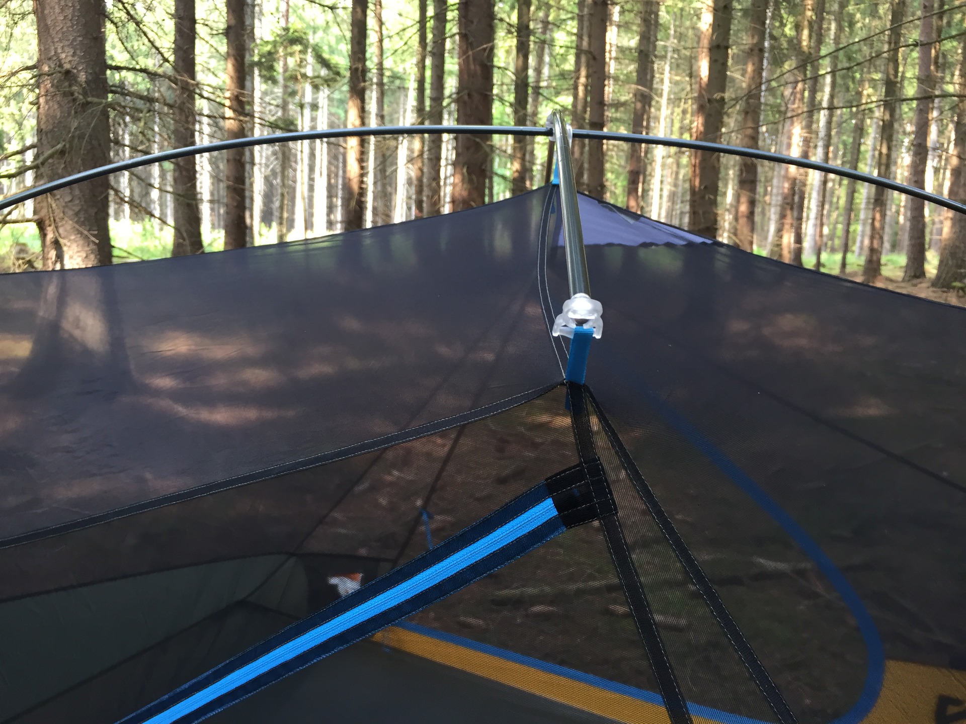 NEMO Blaze 2P detail připnutí krátké tyčky k vnitřnímu stanu.