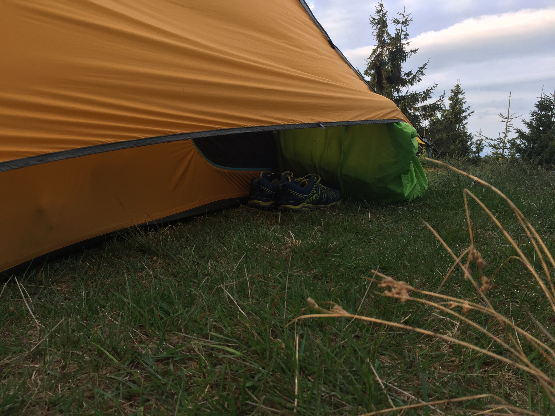 Tropiko stanu je ukotveno v nejnižším místě cca 10 cm nad zemí, což umožňuje skvělou cirkulaci vzduchu mezi vnitřním a vnějším stanem. I přes noční déšť bylo tropiko ráno suché a šlo balit rovnou při vstávání. Tato zvýšená cirkulace byla ale cítit pokud měl člověk rozepnutý spacák.