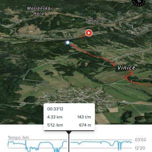 - Druhý režim (žlutý) doporučujeme na turistiku. Polohu na hodinkách načítá zhruba každých 20 – 30 sekund, takže se může stát, že pokud nejdete zcela po linii, ale často měníte směr, nemusí některou vaší polohu zaznamenat. Při běhání mi vzdálenost vyšla zhruba o 20 % kratší než při režimu popisovaném výše. Při rodinném výletu ale vzdálenost byla ve srovnání velmi podobná. Podobných aktivit na jedno nabití můžete provádět až 30 hodin.