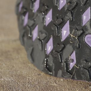 Prvotnímu určení je přizpůsoben i podvozek – tedy podrážka boty. Vzorek je relativně univerzální a snad kromě hlubokého bláta nebo sněhu zvládne jakýkoli terén. Špunty jsou zde poměrně jemně rozesety ve tvaru drobných „motýlů“. Tento tvar pěkně zabírá ve všech směrech – tedy ve výběhu, seběhu, ale i v zatáčkách nebo při traverzování svahu. Tato univerzální podešev je důležitá z hlediska právě ultra-trailu. Při takovémto typu závodu totiž vystřídáte velké množství povrchů. Od technického trailu, měkké lesní pěšinky, přes šotolinu až po asfalt. Je tedy důležité, aby se bota chovala dobře na všech těchto površích.