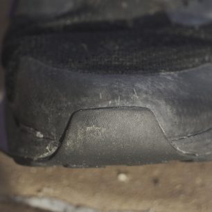 Jak jsem zmínil výše, jazyk zde nemá klasickou podobu, jeho funkci zastává spíše lem, který kotník a nárt obepíná jako ponožka- tento prvek je jednak velmi příjemný a navíc zabraňuje vniknutí nečistot do boty. Pata je usazená poměrně pevně, nicméně v patní misce najdeme polstrování, které, v mém případě, zabránilo puchýřům nebo otlačeninám na mém poctivě pěstovaném patním výrůstku.