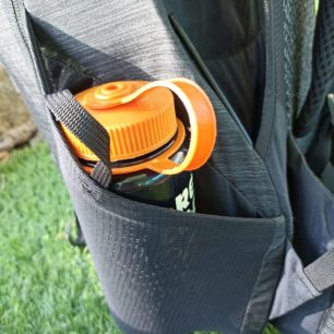 Na obou stranách batohu nechybí kapsa na lahev, kam se pohodlně vejde 1l láhev. V další boční kapse je uložena pláštěnka, jejímž případným vyjmutím se uvolní další zapínací kapsa.