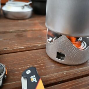 Výhoda celého setu je, že obsahuje rovnou i závětří. To je zejména důležité při vaření na lihu. Nevýhodou je, že musíte držák i závětří vždy brát s sebou, jelikož bez něj neuvaříte. Tvoří totiž i držák hořáku. Takže nosíte stále sebou dva „děravé hrnce“ z UL hliníku. Rozhodně se mi líbilo, že jsem neřešil závětří a super místo na umístění vařiče. Díky široké základně je vařič totálně stabilní a závětří funguje skvěle. Rozhodnutí je na vás. Dalším poznatkem je fakt, že zapálení lihového hořáku pomocí zapalovače je trochu problematické a sirky jsou lepší. Set je možno odlehčit absencí konvičky nebo druhého hrnce. Máte i jiné nádobí než Trangia? Například smaltovaný hrnek, mocca konvičku či menší ešus? V tom případě není nic ztraceno! Využít můžete extra redukci Trangia Pan Stand pro menší nádoby nebo třeba i pro mocca konvičku. Redukce je vhodná pro modely 25 a 27. Výklopné držáky jsou určeny pro originální kastroly a konvičku. Sklapovací madlo na konvičce při uložení do ešusu dřelo jeho povrch a tak stačilo oba konce stlačit kombinačkami tak, aby ostré konce směřovaly do konvice a ne ven. Vyřešeno za 2 vteřiny. Hodit se může i další extra vybavení jako je Trangia Multi-Disk.