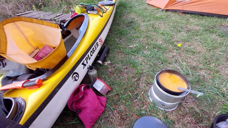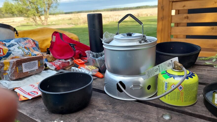 Tohle vaření na dvou „kastrolech“ spojených dohromady sleduji už opravdu dlouho. Už jsem viděl hodně romantických fotek v divočině s vyvařováním na tomto typu vařiče. A letos se mi konečně poštěstilo si to sám vyzkoušet. Sice ne ve švédské divočině, ale ona i třeba ta polská Amazione byla taky skvělá. Testoval jsem tradiční švédský set na vaření pro 1-2 osoby. Tahle sestava obsahovala podstavec, závětří, dva litrové hrnce, pánev, hořák (já testoval lihový i ten plynový), rukojeť (kleštičky pro manipulaci s nádobím) a popruh na zabalení a transport vařícího setu TRANGIA 27-7 UL/HA. Extra jsem ještě testoval i konvičku, která se do celého setu vejde a do ní i lihový hořák. Ke každé soupravě je vždy možno vybrat plynový nebo lihový hořák. Plynový hořák lze kombinovat s jakoukoliv kartuší se závitem 7/16. Filozofií Trangie, je užívat vařič dlouhé roky nebo dokonce po generace a z toho důvodu lze v případě ztráty nebo poškození každý díl vařiče opět dokoupit.