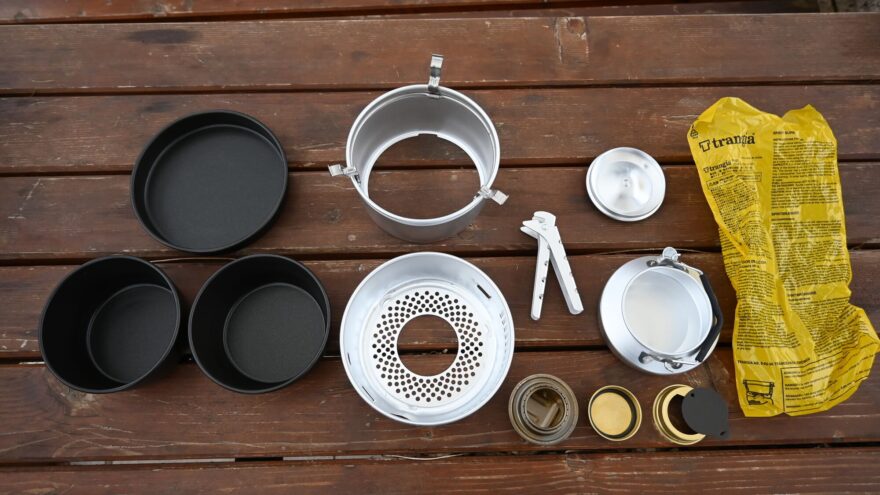Osobně jsem zjistil, že držák a závětří nejsou jen dva hrnce navíc, ale že se jedná o dva užitečné kusy celého setu, které mají svůj účel a zjednodušují vaření. Vaření bylo pohodlné a při výběru mezi lihem a plynem i velmi variabilní. Testovaný set + extra konvička je ideální sada pro dva dobrodruhy. Obsahuje vše pro kompletní vaření. Pro větší skupiny je vhodnější například set Trangia 25-1 UL s většími hrnci (1,75 a 1,5 litru).