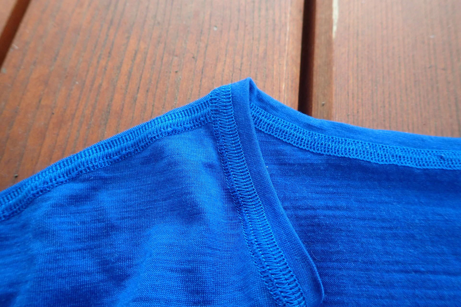 Detail na šití trika WOOLIFE a jemnou strukturu materiálu.