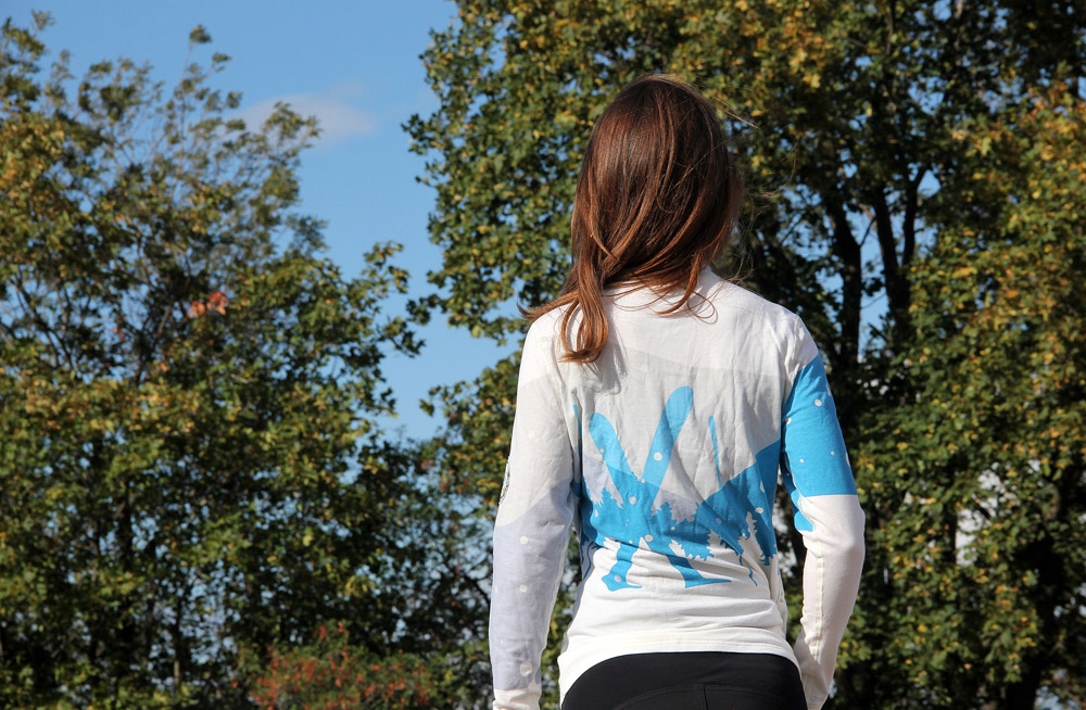 Grafický motiv se stoupajícími skialpinisty/skialpinistkami na břiše, kteří se pohybují kolem lesa za hustého sněžení ke kopci stoupajícímu až k rameni, je výborný, a nenechá nikoho na pochybách v tom, co je možnou nejoblíbenější zimní aktivitou majitelky. Hustě sněží nejenom přes břicho a část hrudi, ale také na obou rukávech. Levý rukáv je vylepšen o „Warmpeace kruh“ s horami, stromy, alpskou protěží, logem a nápisem „Warm on body – Peace in Soul since 1986“. Doplněním bohatě zdobené přední části Debbie jsou na zádech zapíchnuté lyže s holemi, k nimž v hustém sněžení tvoří pozadí opět hory. Co se na grafice opravdu povedlo je perfektní kombinace sněžení s různě barevnými odstíny oblohy, stíny skialpinistů a protisluncem.