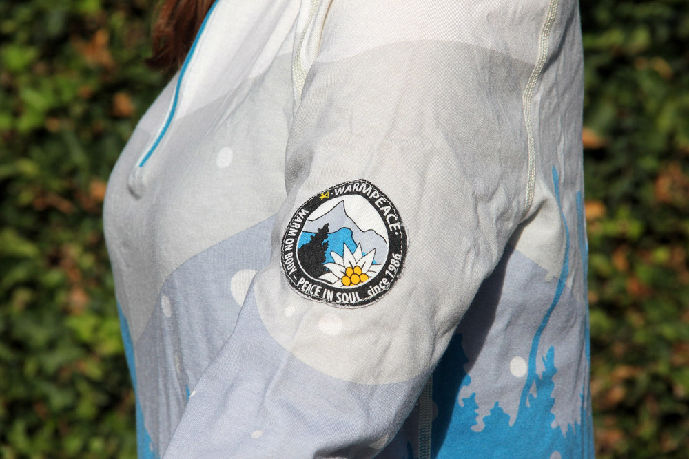 Vylepšené logo Warmpeace na pulovru Warmpeace Debbie