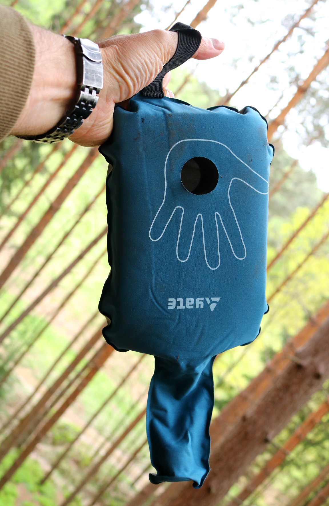 Ruční nafukování karimatky YATE TREKKER STRETCH pomocí textilní pumpy.