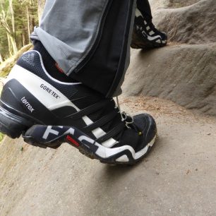 Trekovky adidas Fast R GTX z outdoorové řady Terrex působí na první pohled poněkud sportovním dojmem, na což jsme si u tohoto výrobce již zvykli, ale to jim neubírá nic na jejich využití pro horský treking v rychlejším podání, čemuž napovídá i jejich označení. Jsem člověk, který se nerad fláká a raději vše dělá v rychlejším tempu (teda co se alespoň fyzické aktivity týče, s morálem už je to horší), sportovní vzhled Fastů mi tedy nijak zvlášť nevadí a naopak mě i párkrát podvědomě přinutil trošku přidat do tempa. Z praktických důvodů nejsem příznivcem bílé barvy (nevím, jak je to možný, ale jsem „zaprasen“ dřív, než vyjdu ze dveří) u jakéhokoliv oblečení, natož u bot, ale musím uznat, že jim to přidává na dynamičnosti. Po čase používání ale stejně bílá už není bílá, takže jsem spokojen. Tolik do vzhledu.