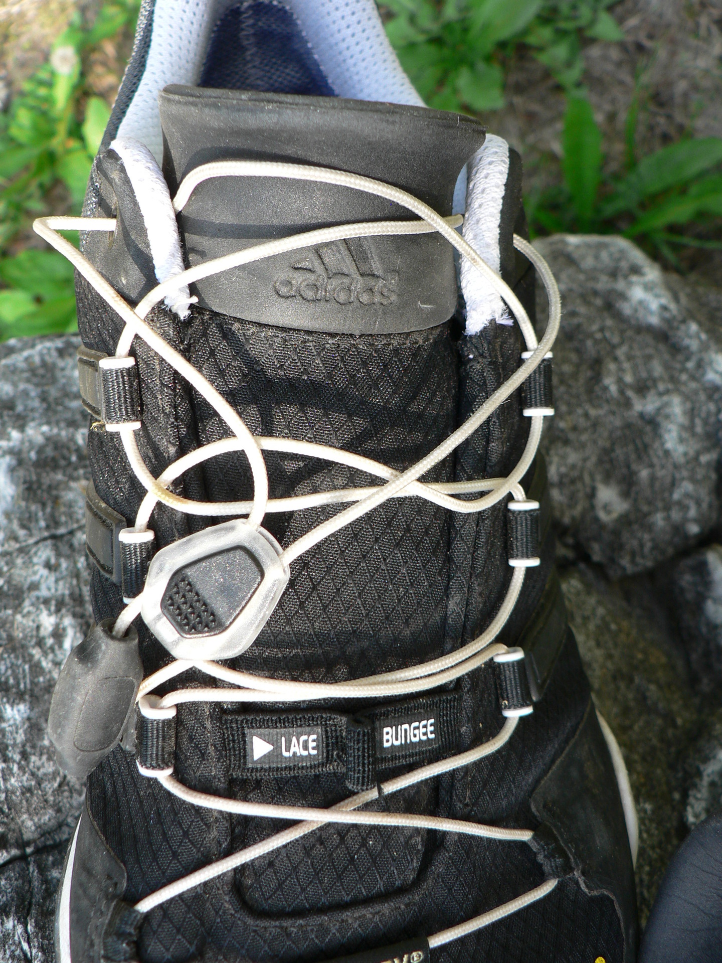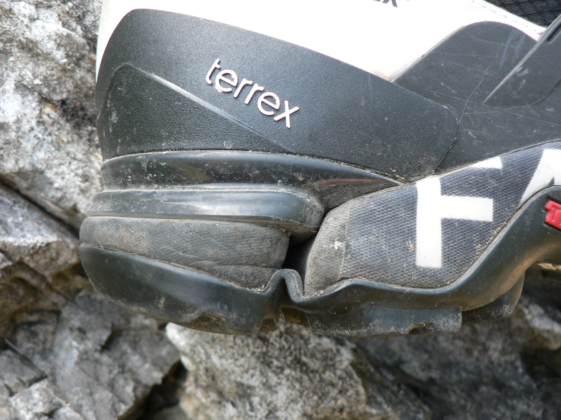 Na první pohled je bota velmi úzká, což ve mně vzbuzovalo mírnou nedůvěru, abych nebyl jak na bidýlku. Úzká bota však velmi dobře padne na nohu, ihned se přizpůsobí a drží ji na svém místě. Po mé sportovní „kariéře“ je stabilita v kotnících na čestné slovo, ale musím říct, že jsem v modelu Fast neměl zatím jediný problém. Stabilitu totiž udržuje technologie Formotion, tedy oddělená pata, která se přizpůsobí náklonu a míře zatížení tím, že se plánovaně deformuje podle stylu pohybu. Tato technologie je ocenitelná zejména při pohybu z kopce, kdy na patu a kotníky vyvíjíme největší tlak. Preferuji, když je celý systém podešve a podrážky jednolitý, aby byl co nejméně náchylný k separaci jednotlivých částí, což už z profilu poznáte, že tomu u těchto bot není. Ale pokud se nejedená jen o „designový“ prvek a opravdu to funguje, jak má, tak proč ne. Čas ukáže, jak dlouho pata vydrží na svém místě. Zároveň je pod patou použita technologie Adiprene, která tlumí nárazy v této části nohy, takže ani po delších trecích jsem netrpěl bolestí pat, jak se mi často stávalo.