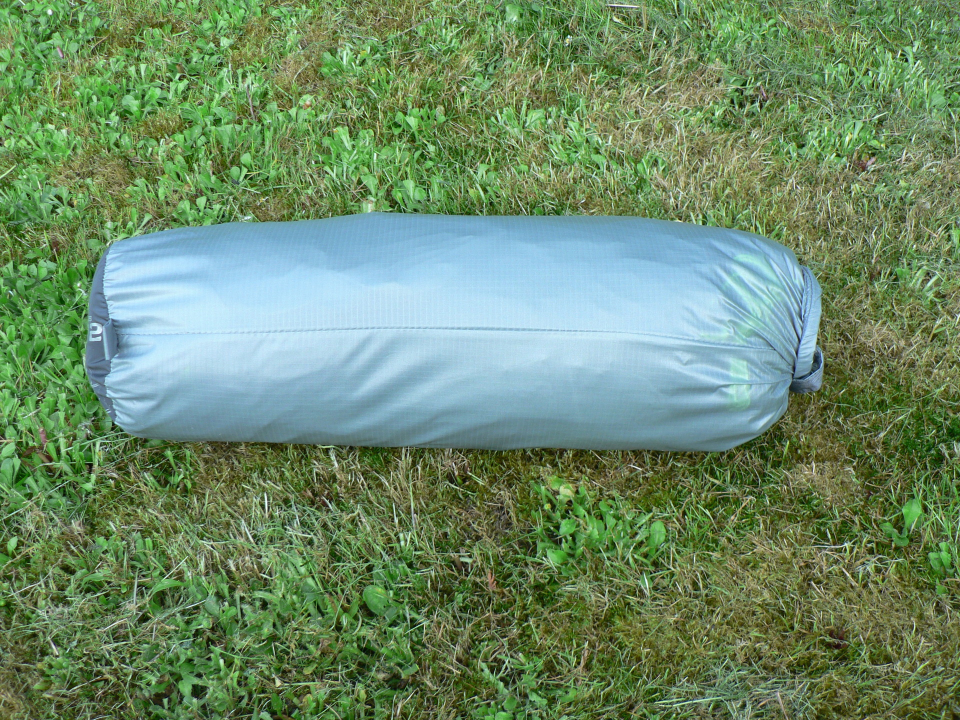 Kompresní obal, i když v případě stanu bych úplně o kompresním obalu nemluvila, přeci jen postrádá jakékoliv kompresní popruhy a zas tolik materiálu na výrazné stlačení v něm oproti spacákům není, obsahuje standardní stanovou výbavu – tropiko, vnitřní stan, kostru a kolíky. Nic víc není potřeba. Po vybalení mě zaujalo několik věcí. Tropiko je z tak lehkého materiálu, až jsem se bála ho na konstrukci napnout. Proto jsem raději vyzkoušela jeho pevnost v tahu ještě před stavbou a musím přiznat, že nylonový materiál s jednostrannou silikonizovanou úpravou mě v tomto ohledu velice kladně překvapil.