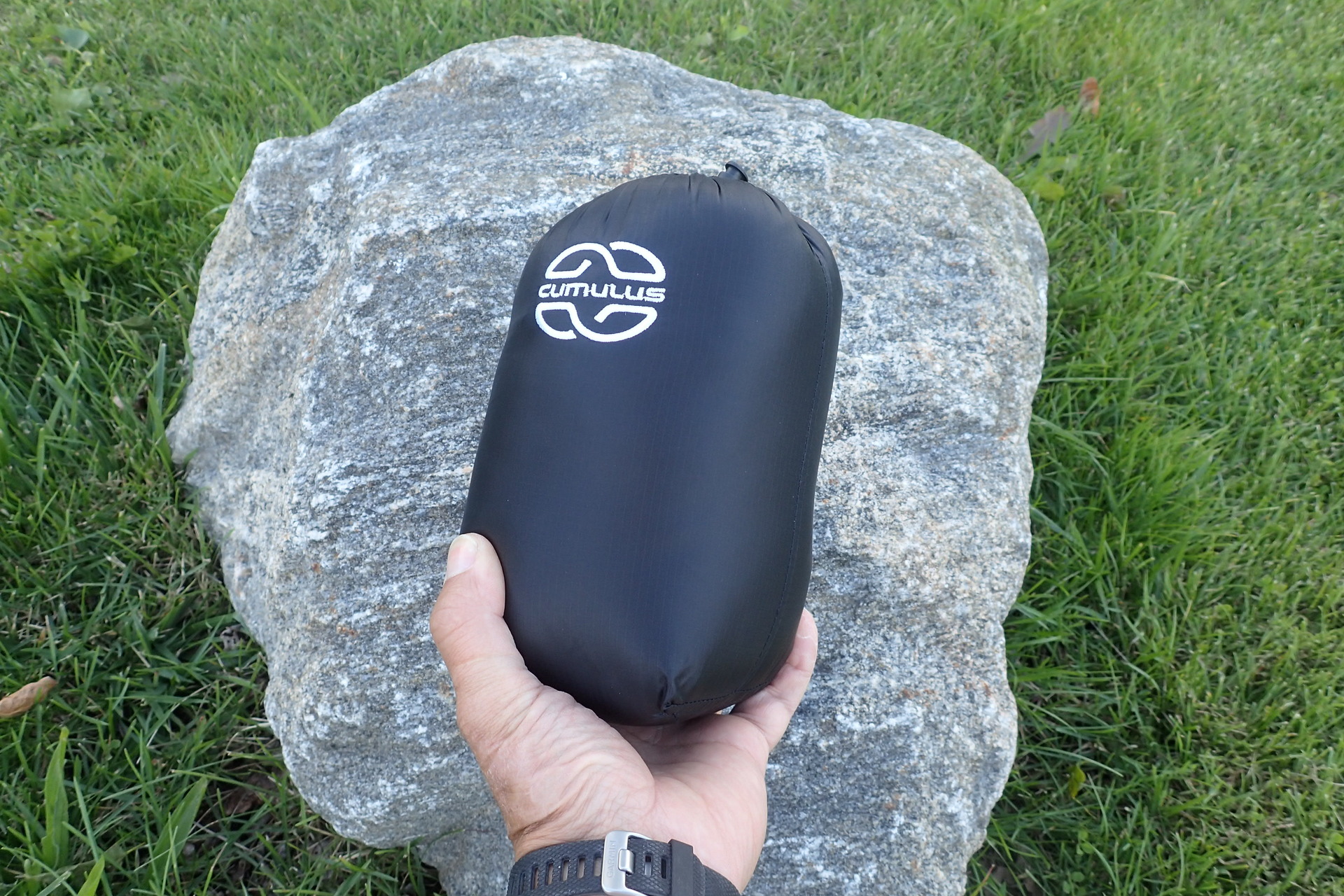 Po vyjmutí z tohoto „kompresního“ obalu bych doporučoval před ulehnutím tento spacák protřepat tak, aby co nejvíce nabyl na objemu. Malé hmotnosti je dosaženo kromě použití kvalitní náplně o hmotnosti pouhých 125 g, také svrchním materiálem, lehkých zipem a absencí kapuce. Cumulus Magic 125 ZIP je podle výrobce nejlehčím spacákem na světě se zipem – váží pouhých 275 g (v prodloužené verzi L 299 g).