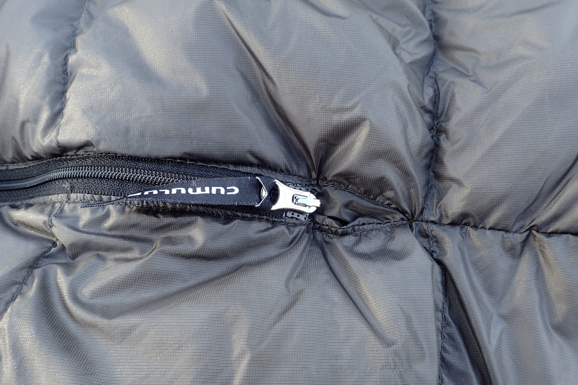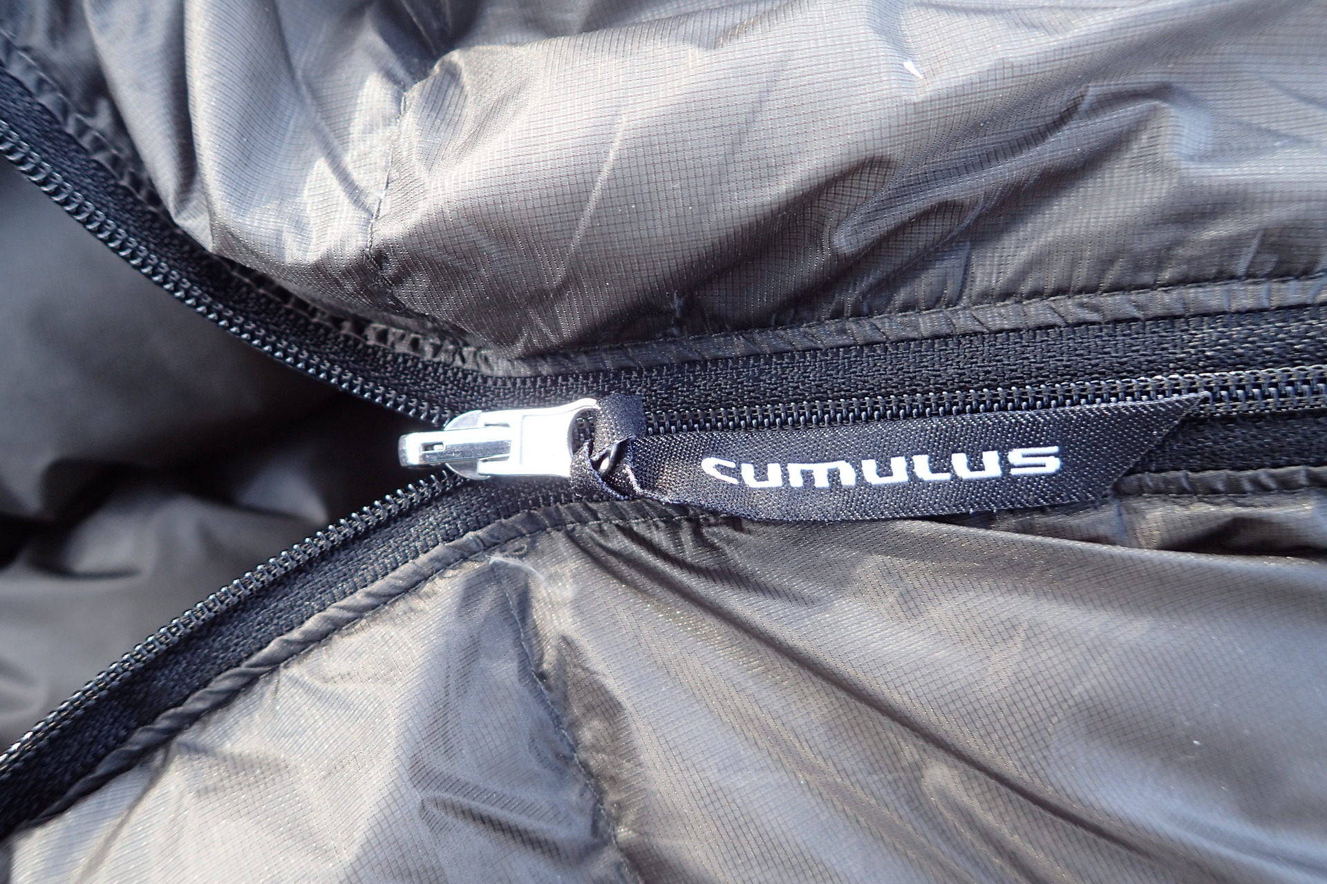 Použitý YKK spirálový zip je dvojcestný. Oba jezdce jsou opatřeny textilním táhlem s nápisem Cumulus. Manipulace je jednoduchá. Zip není opatřen žádnou légou. Vše je podřízeno objemu a hmotnosti. Spacák nemá kapuci. Zatáhnout se tak dá „po krkem“ a to na tenkou pružnou tkanicí se samosvorkou s jednodotykovým ovládáním (samosvorka je fixovaná ke spacáku).