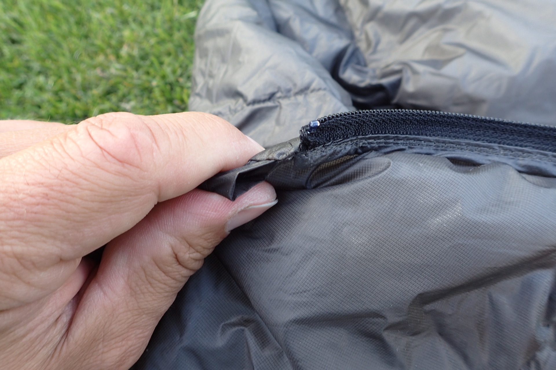 Ukončení zipu u spacáku Cumulus Magic 125 Zip v nožní části.