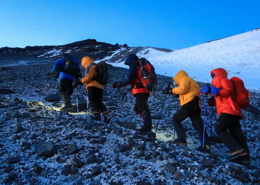 Ve výšce 6 400 m n. m. asistent hlavního guida dostává průjem. V ten moment se s Martinem stáváme asistenty my. Od teď se staráme nejen o vynášku, ale i o bezpečí a pohodlí klientů.