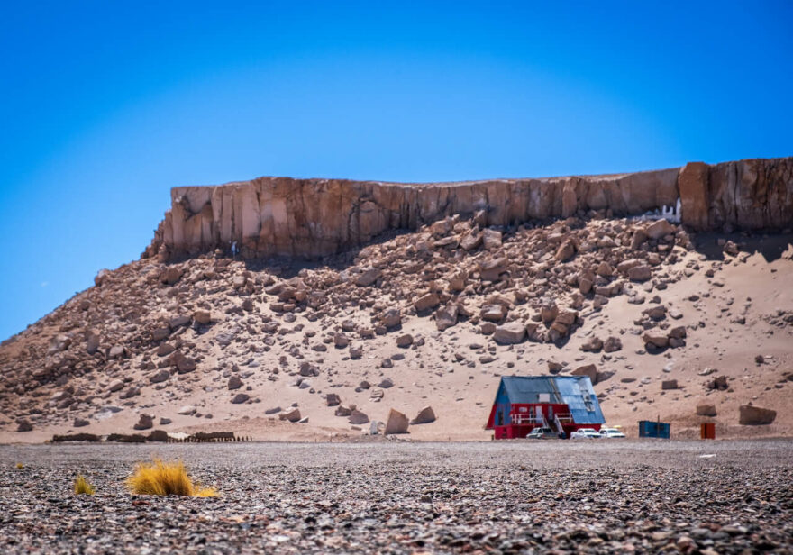 Do refugia Lucero se musíme po silnici, která vede od laguny, vrátit patnáct kilometrů zpátky. S naším nákladem na zádech a fyzickým stavem způsobeným nadmořskou výškou se raději ptáme francouzského páru, který nás sem zavezl, jestli by nás svezli i kousek zpět. S úsměvem nám odpovídají, že ano. Dostáváme se k místu u cesty, odkud se jde pouští dva kilometry až k refugiu. Upřímně nevíme, co máme čekat. Nic jsme si dopředu nezjišťovali. Refugio jsme si našli na mapách a rozhodli se k němu jít. Snad tam bude, honí se mi v myšlenkách.