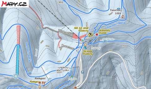 Na své si přijdou také sjezdoví lyžaři, protože mapa zobrazuje jak sjezdovky, tak jejich obtížnost rozlišenou klasicky podle barev černá, červená, modrá. Uvidíte také to, která sjezdovka má osvětlení, kde zaparkovat nebo jestli má středisko snowpark či bobovou dráhu. Úplný přehled o značení můžete získat díky legendě.