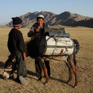 Do hor nás vede průvodce Japar. Pomáháme mu nakládat věci na dva oslíky a jednoho koně. Původně sedmihodinová cesta se protáhne na tři dny pochodu. Krajina připomíná hornatou poušť. Samé kamení a občas rostlina s trny. Trápí nás žízeň a teplo.