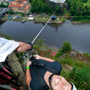 Slaňování: slaňování ze zámku na pravý břeh Labe