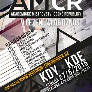 Jen o pár dní později se studenti mohou zúčastnit akademického mistrovství České republiky v lezeckém centru Vertikon ve Zlíně. Přihlásit se můžete online. Pořadatelem závodu je ÚTV FaME, UTB ve Zlíně. Soutěž proběhne dvoukolově – kvalifikace stylem flash a finále on-sight.